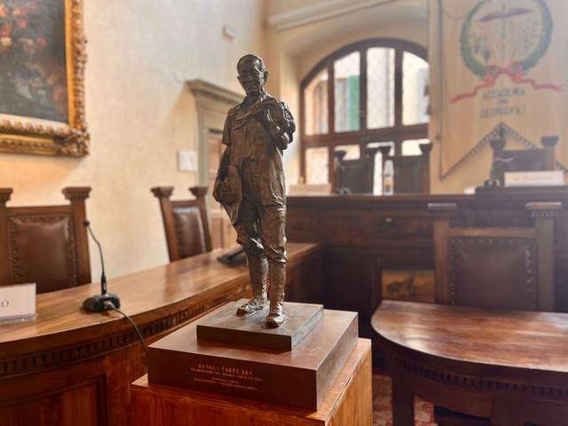自然科学院院长马西莫·温琴齐尼深耕农学研究,办公室里有许多围绕自然和土地的画作和雕塑,墙上还挂着一幅中国书法“爱农学农,其乐无穷”。温琴齐尼指着这幅汉字介绍道,中意都是农业古国,农业文明底蕴浓厚,在他牵头下,自然科学院首次翻译出版了中国元代重要农业著作《王祯农书》。在翻译过程中,他发现意中在农业发展方面有不少相似的成果,这更让他对两个古老文明之间的连结感到着迷。采访完毕,温琴齐尼坚持送记者一本意语版《王祯农书》,两个文明超越语言和学科的交流让这本书多了一层分量。